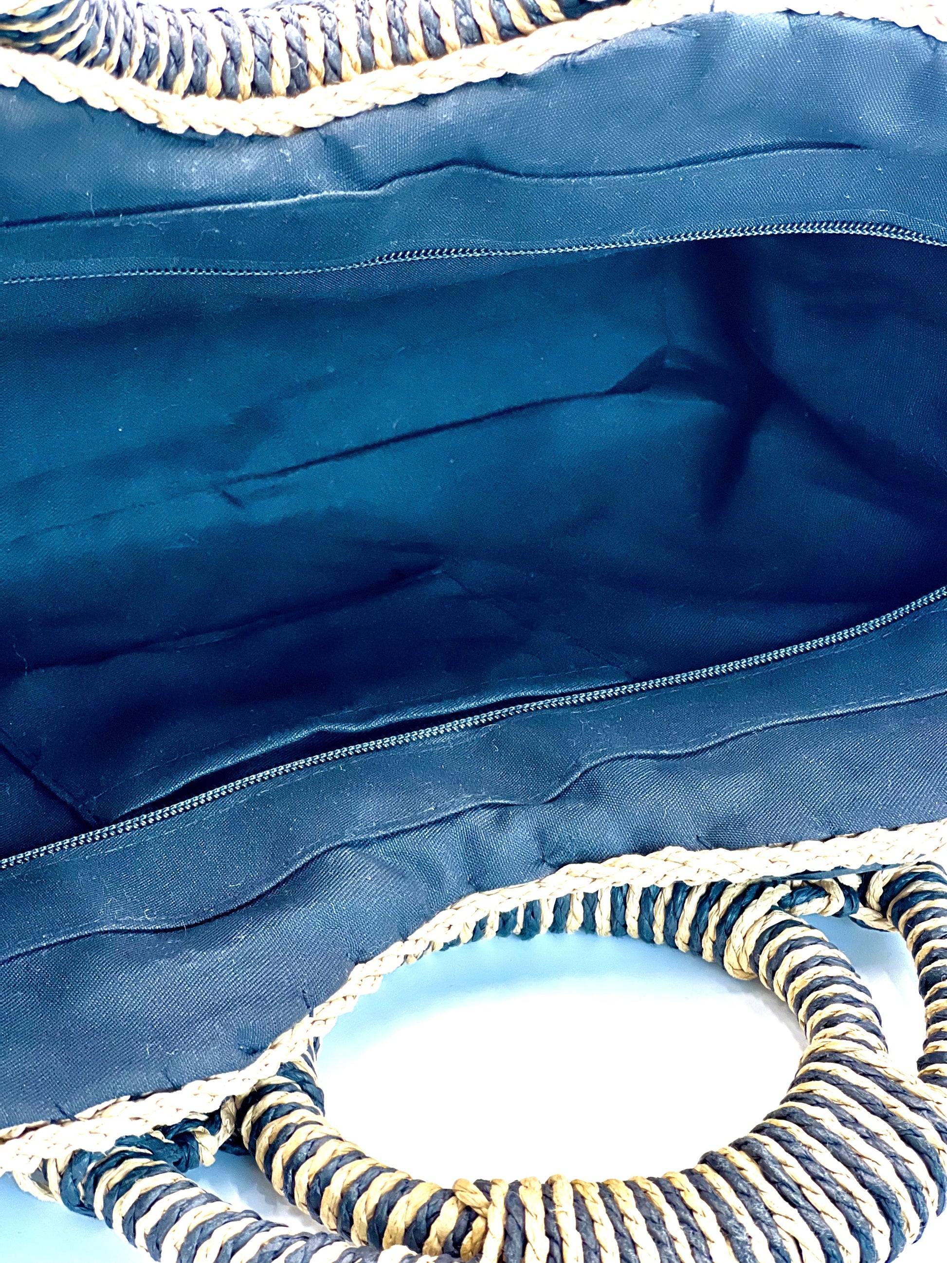 El bolso Positano tiene un diseño amplio y rectangular, ideal para llevar tus pertenencias a la playa con estilo.
